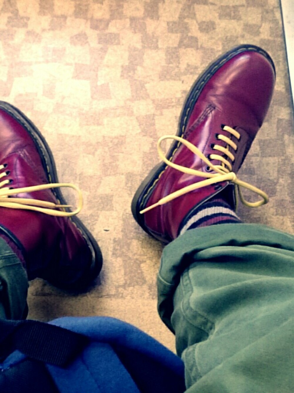 靴紐でガラリと変わる♪ 純正のイエローの靴紐は彩度が高すぎて新品ならありなのですが、長年履いてる靴であるとどうしても浮いて見えるので あえてマロンに近いイエローベージュ系の靴紐を使用致しました 高級感がやはりこの色だと増しますね♪ 意外とドクターマーチンってブラックよりもチェリーレッドの方がコーデに応用が効くので重宝してます♪