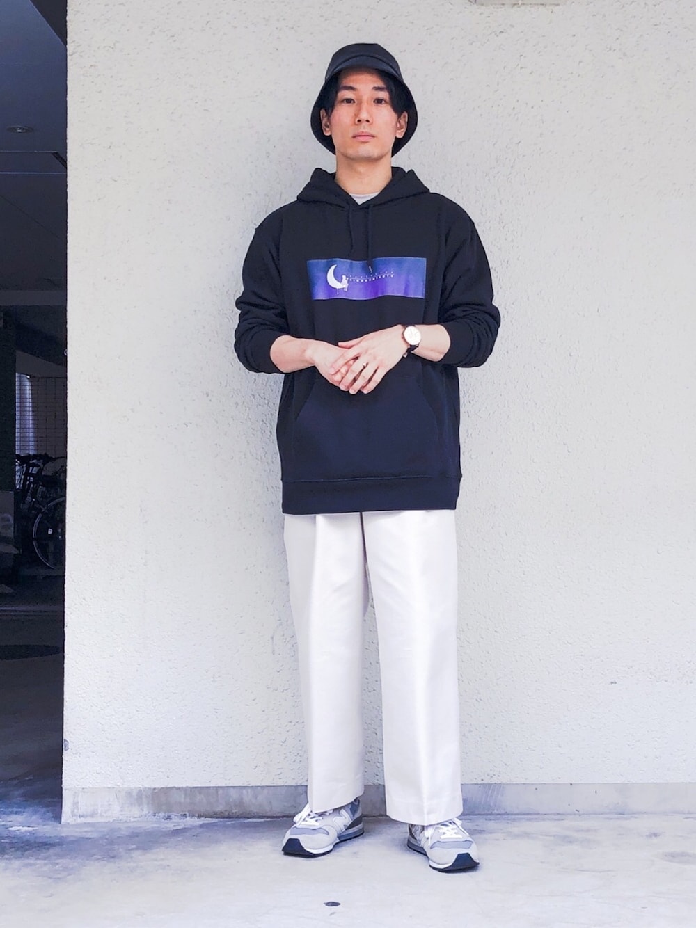✅ポイント オーバーサイズのパーカーをバケットハットで引き締め◎ シンプルコーデなのでアクセサリーをつけるようにしてます🙆♂️ いい感じに撮れた🙌
