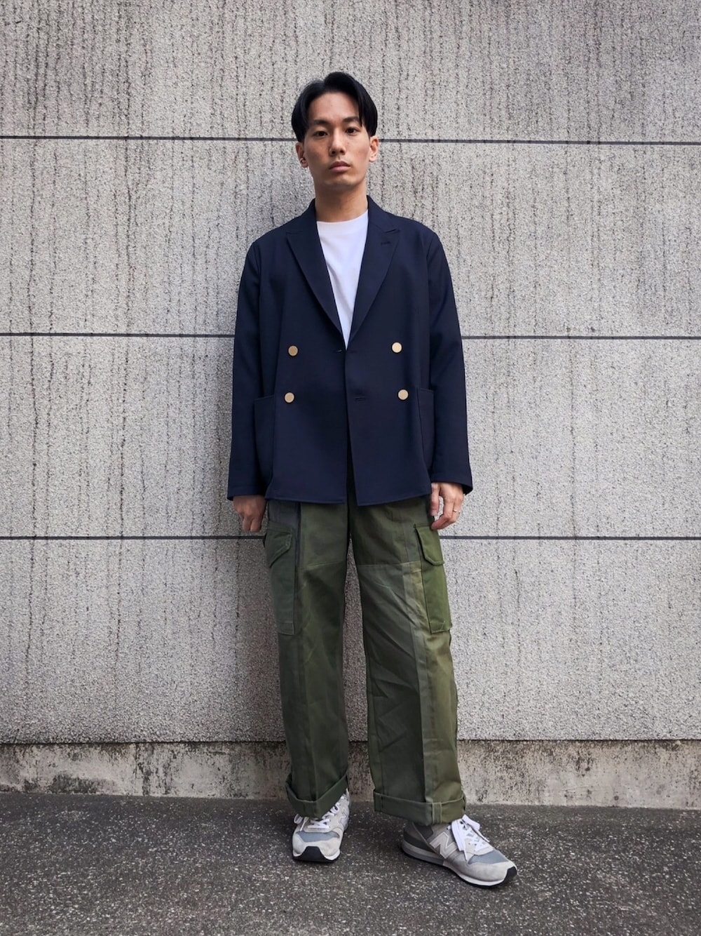 ✅ポイント ダブルのブレザーをカーゴパンツでがっつりカジュアルダウン🙆♂️ Tシャツにスニーカーを合わせて春らしくしてみました。 リメイクのカーゴパンツがめちゃくちゃかっこいい……! ブレザーも暑くなる前に沢山着たいですね🤤