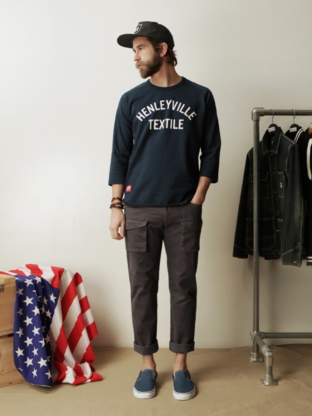 espionageのトップス「Henley Ville Raglan Shirt Navy」を使ったコーディネート