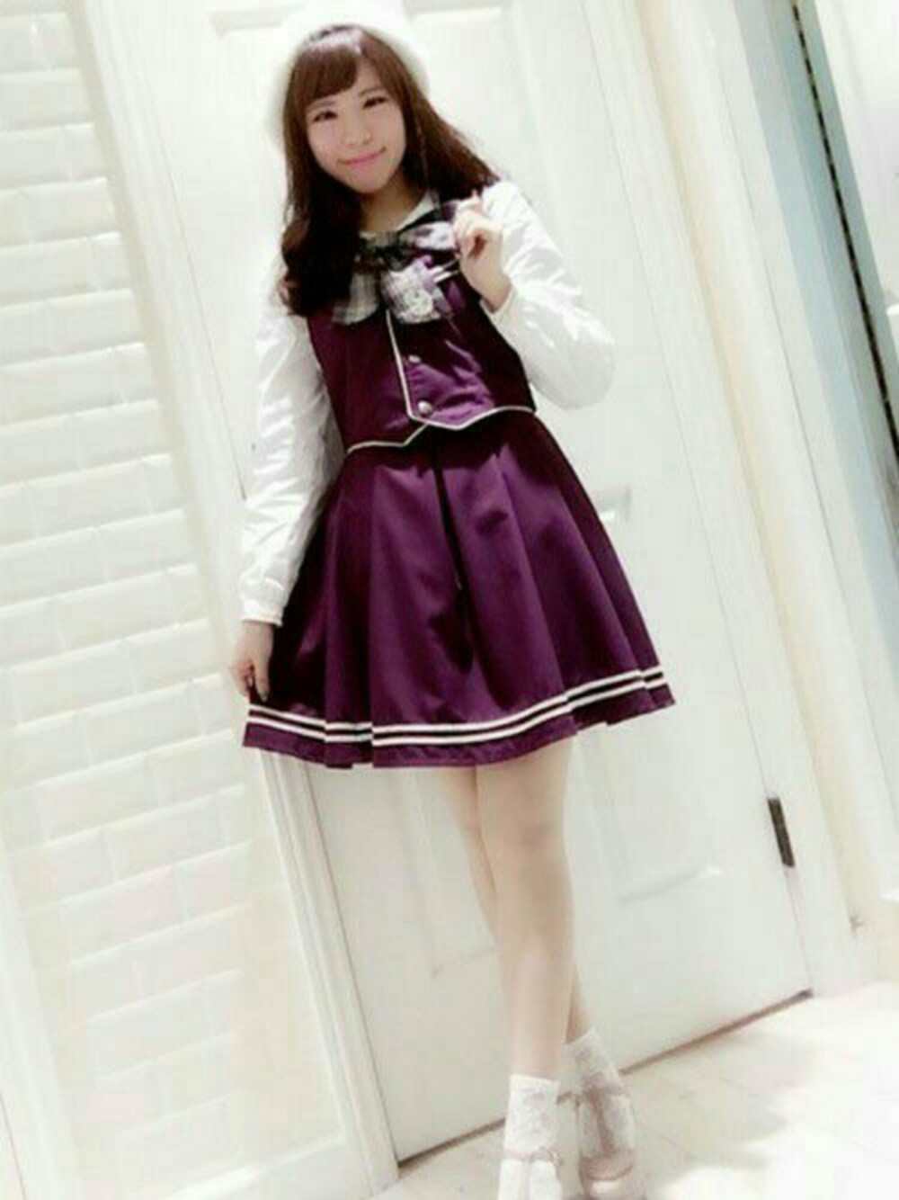 リボン付ブラウスとセーラージャンパードレスでスクールガール風♪