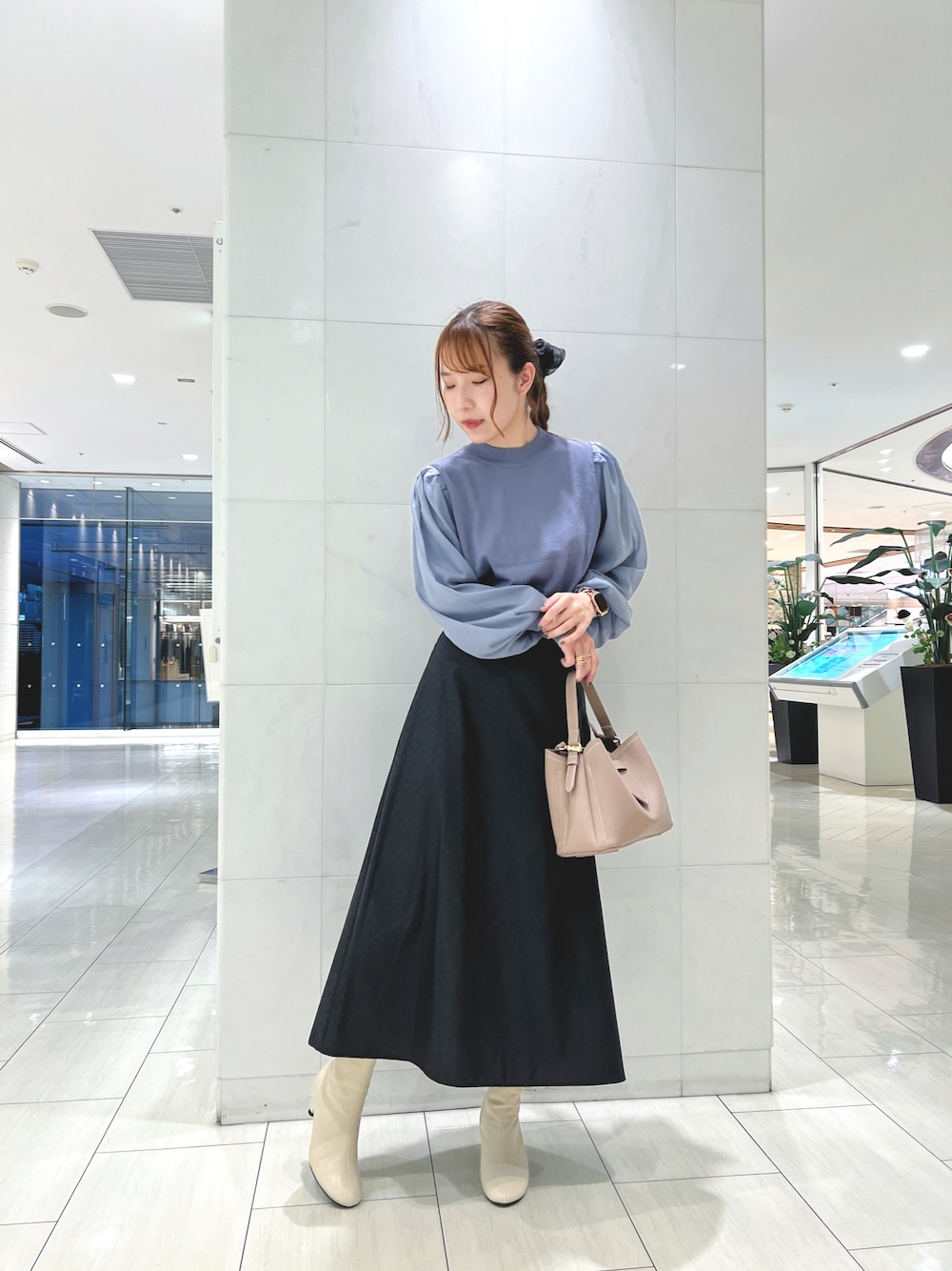 シフォンスリーブニットは透け感が少ないヘルシーなシアー感で抜け感のあるコーデをお楽しみ頂けます! スカートでもパンツでもオールマイティにお使いしやすいのもポイントです。 キルティングスカートはボリュームが出過ぎない形の良いフレアシルエットなので、シンプルでありながらもデザイン性のある1枚です。