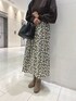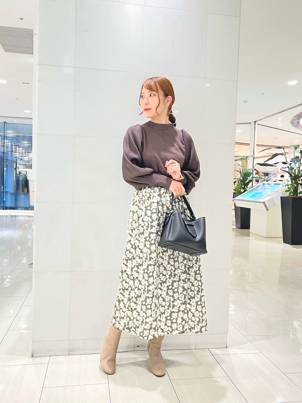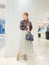ボリューム袖のニットは、袖口が長めの仕様で手を長く見せてくれるようなクラシカルなデザインになっております。 総柄のタックスカートもデザインはベーシックなものになっており、シンプルめなトップスと合わせることでよりフェミニンな印象を演出してくれます。
