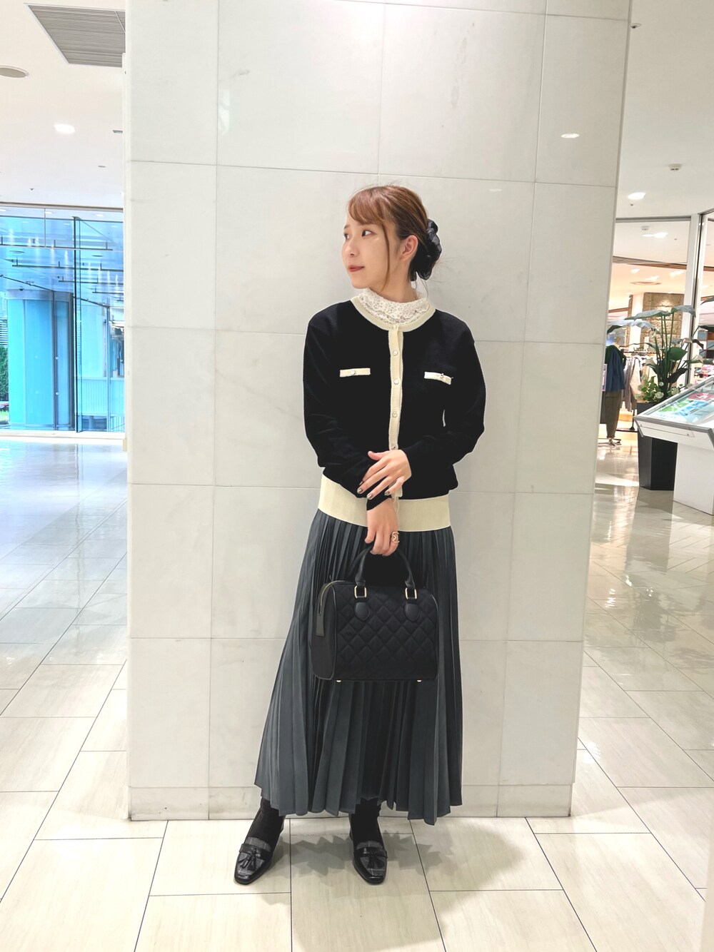 今季トレンドのレースインナーのレイヤードコーデ🖤🤍 首元からさりげなく覗くレースが甘さを出しすぎず華やかさを演出してくれます。 スウェットやブラウス等の中にも1枚着るだけでトレンド感の出る1枚です。 着回ししやすいプリーツスカートは、スエード調になっており、細めのプリーツのため歩いた時のシルエットが綺麗なのもポイントです。