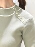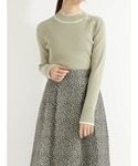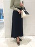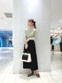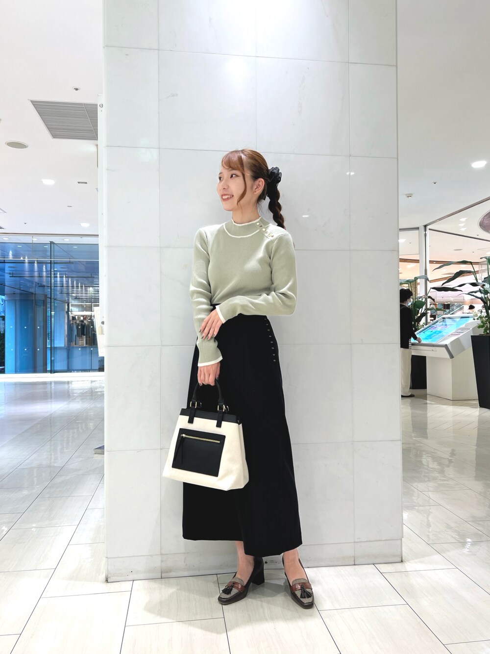 リブニットは、首元から斜めに入った金ボタンが高級感を演出し、 細めのリブで上半身を華奢見えさせてくれます。 グリーンのカラーはホワイトのバイカラーラインが入っているアクセントもポイントです。 スカートはタイトすぎずにゆったりと細見えさせてくれる1枚です。 腰元のボタンも無地のシンプルなデザインなので、着回し力抜群です。