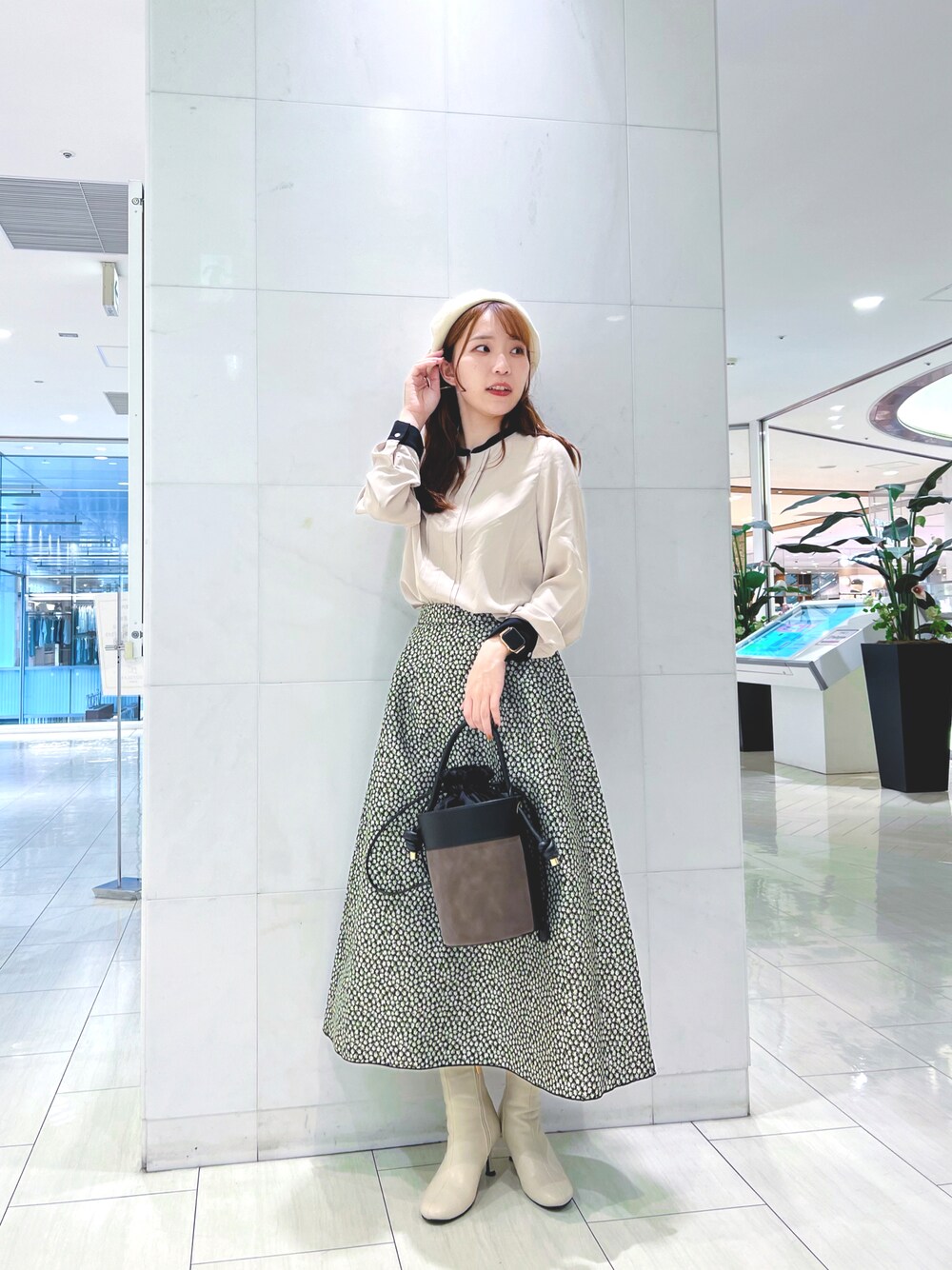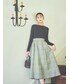 ご覧頂きありがとうございます🍀 本日は甘めガーリースタイル。 バイカラーのブラウスは、ベージュ×ブラックの優しい色合いでビジネススタイルにも。 柄物のフレアスカートとの相性も抜群です✌🏻