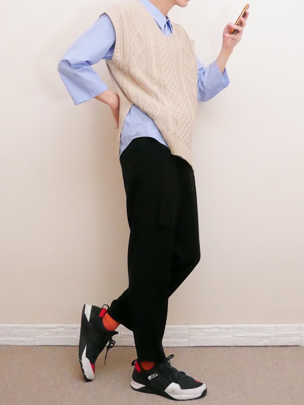 ご観覧ありがとうございます🙇♂️ きれいめストリート😇 スラックスにスニーカーを合わせて ストリート感あるカジュアルにイメージして、 トップスは水色のシャツとベージュのニットベストでキレイめな印象に 分けました😌 最近このスタイルが好きすぎて、 めちゃくちゃやってます! この上にコートを着たらもう冬コーデです👏 Instagramに別のコーデも載せますので、 是非ご観覧下さい!