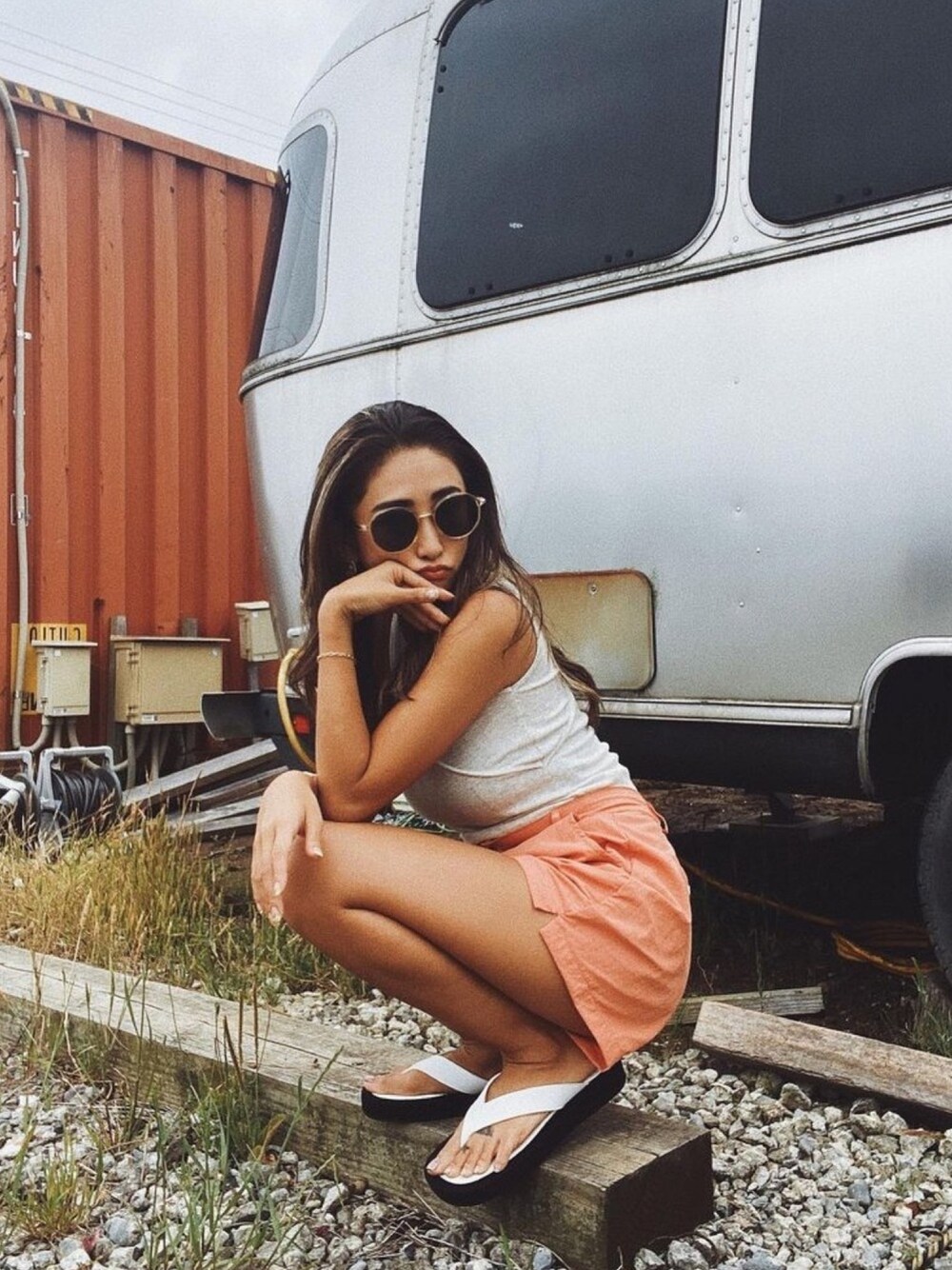 夏にピッタリのオレンジのショートパンツを使ったコーデ🍊