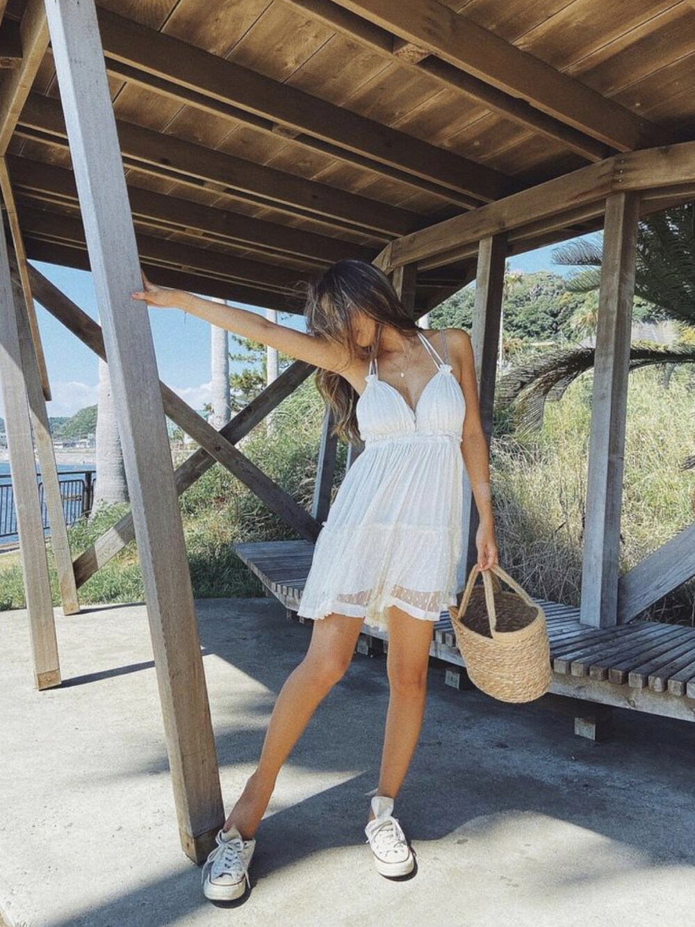 可愛さとセクシーさを兼ね備えたワンピースは、スニーカーでカジュアルダウン👟🤍