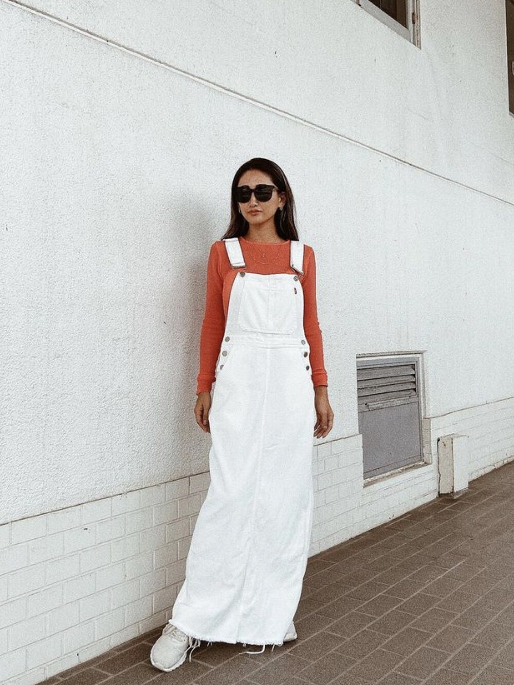 esutoreja 公式のジャンパースカート「ロングジャンパースカート」を使ったコーディネート