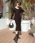 esutoreja 公式のワンピース「デザインニットスリットワンピース」を使ったコーディネート