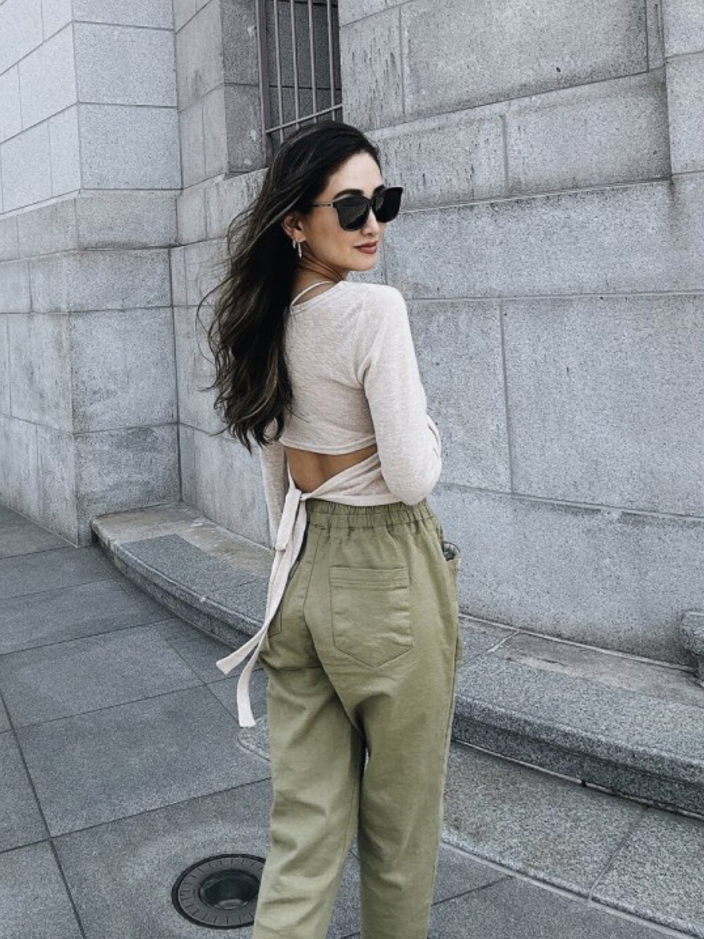 バックオープンがセクシーなトップス💘 カーキのテーパードパンツは大活躍間違いなし🌟