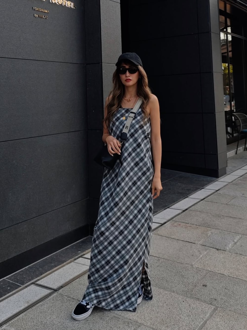 esutoreja 公式のワンピース「チェックキャミソールワンピース」を使ったコーディネート
