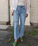 オールシーズン履きやすいデザイン 程よいダメージ加工と裾のカットオフデザインでこなれ感