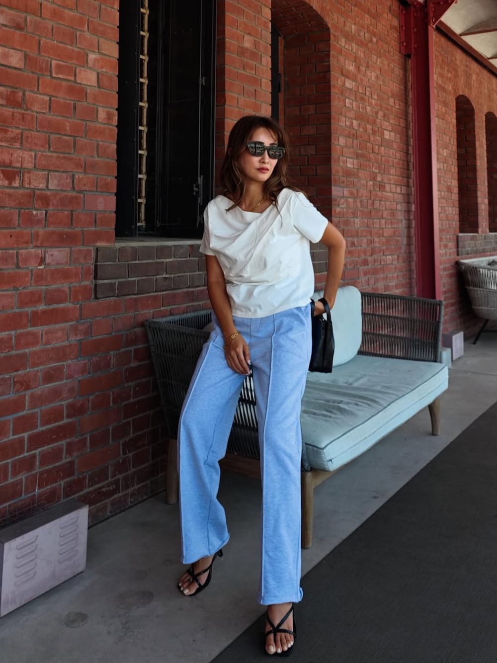 esutoreja 公式のスウェットパンツ「スウェットセンタープレスパンツ」を使ったコーディネート