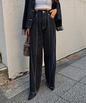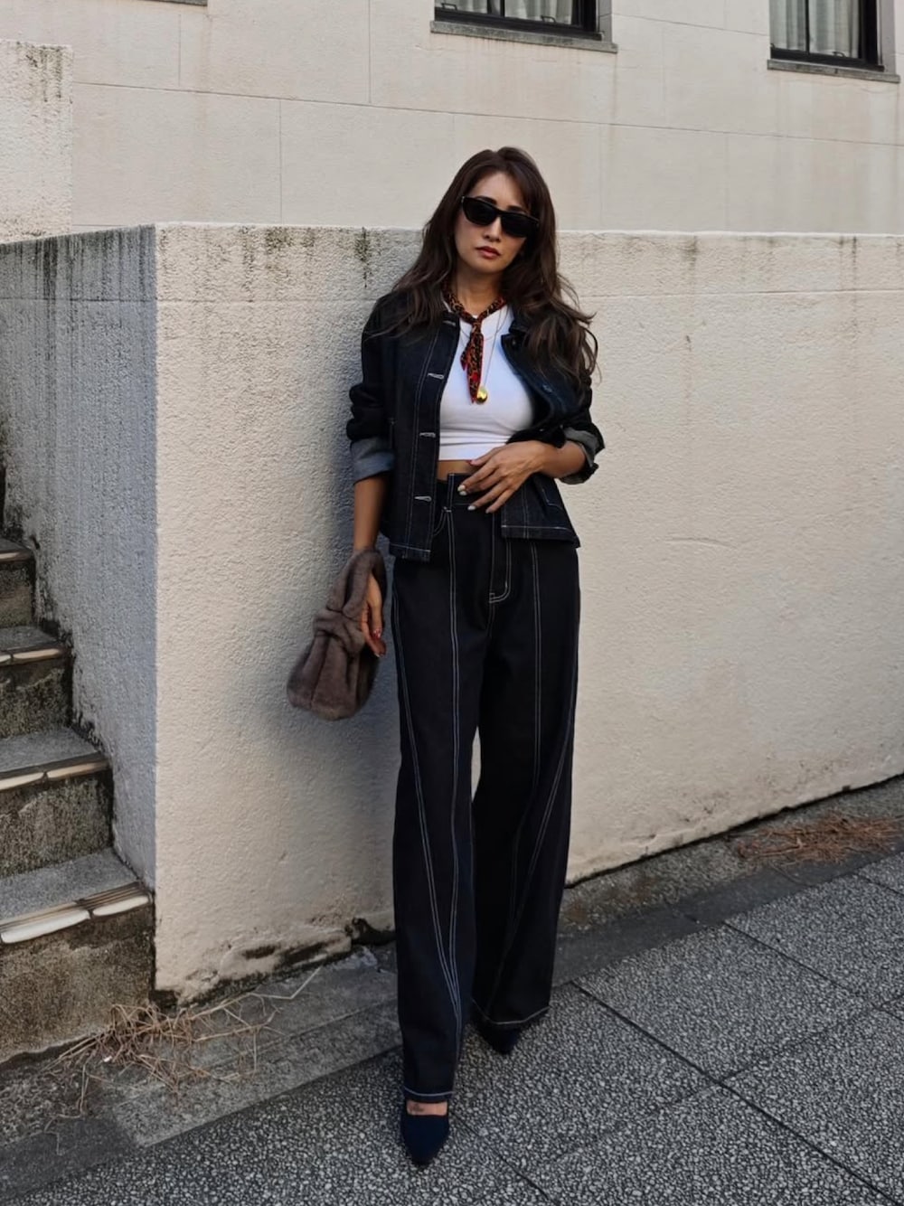 esutoreja 公式のデニムパンツ「パネルラインワイドデニム」を使ったコーディネート
