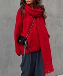 同色のスカーフがセットになったVネックニット もちもちで柔らかく、伸縮性のある生地感でストレスフリーな着心地。 ニットはVネックデザインなので、シャツやロンTなどレイヤードも楽しめます。