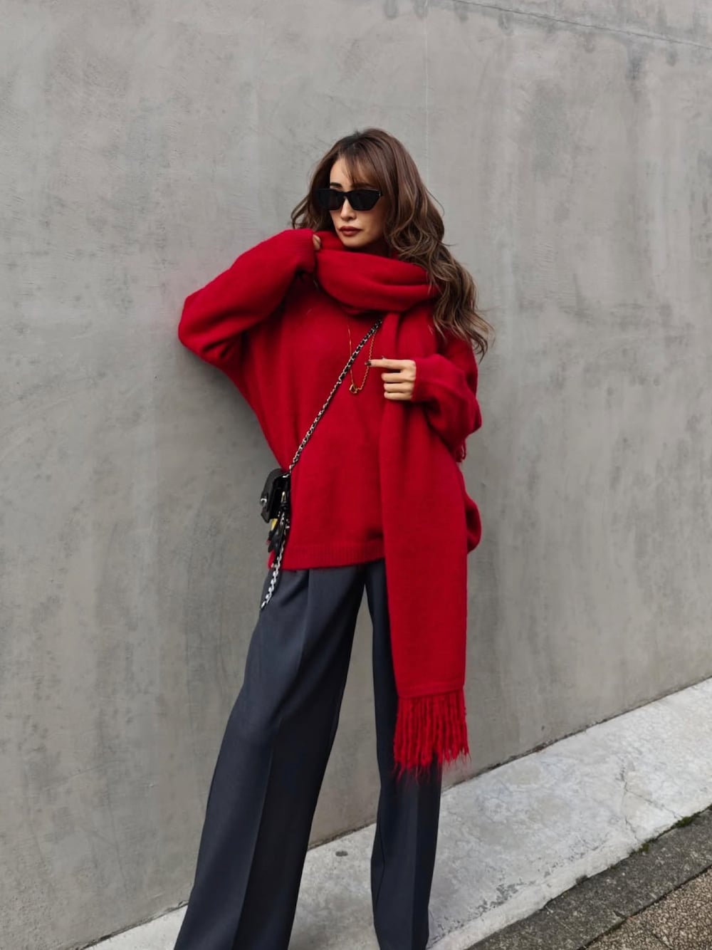 esutoreja 公式のニット/セーター「Vネックニット×スカーフ」を使ったコーディネート