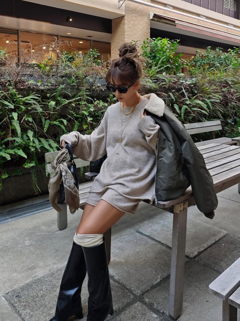 esutoreja 公式のセットアップ「ニットパンツセットアップ」を使ったコーディネート