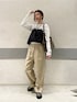 パンツはストレートなシルエットで スッキリみえます! バルーンはお腹周りカバーできて◎