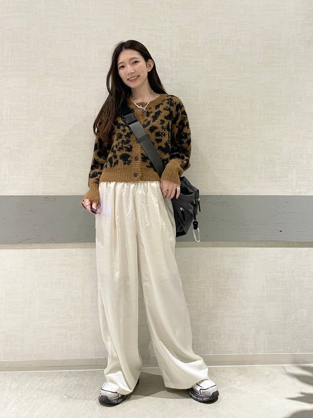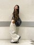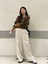 コンパクトなニットは ウエストのゴム隠れるくらいの長さです! パンツはほどよく表面感あるので つるつるすぎないです!