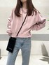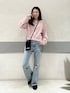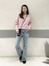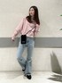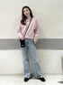 リアル着用です! フレアパンツのシルエットがきれいみえ! くすみピンクのスエットも落ち着きあって 春らしいです!