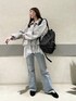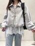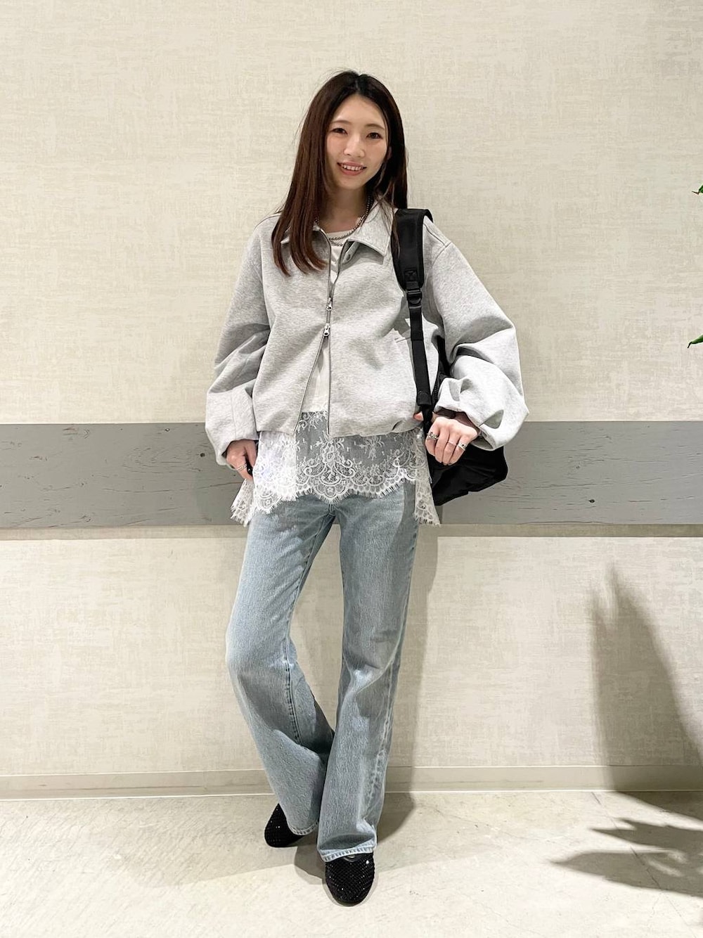 短めのパーカーに レースを重ねるとお尻周りもカバーできます! パンツはやりすぎないフレアなシルエットなのが◎