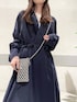 くたっと感が大人っぽいアウターは 裏地がチェックなのも可愛い! スカートは段々になっているので 動きがあって可愛いです