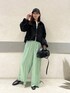ダブルジップのトップスは ボリュームあって可愛いです! パンツは艶感がオシャレ