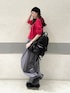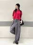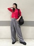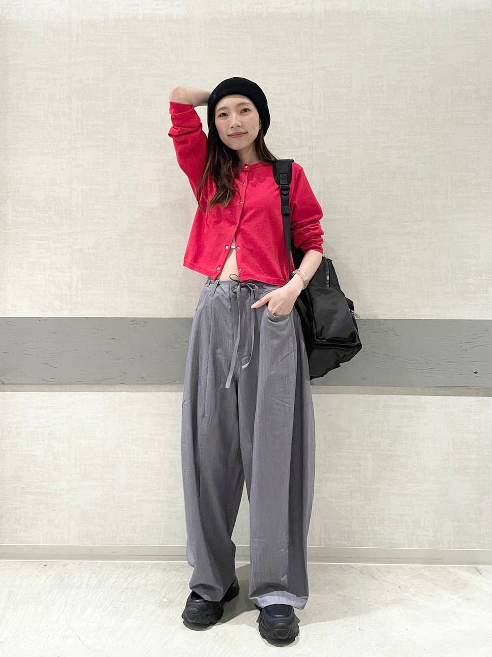 コンパクトなカーディガンは もちもちの素材で、肌触りいいです! パンツはボリュームがあって楽チンです