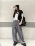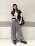 もちっとした素材のベストは フードつきなのが可愛い! パンツはウエスト紐で絞れるので 調整できます!