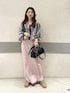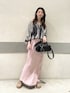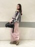 意外としっかりした素材のブラウスは すこしジップを開けてスッキリみせても◎ スエットのスカートはサイドが素材違いで すらっとみえます