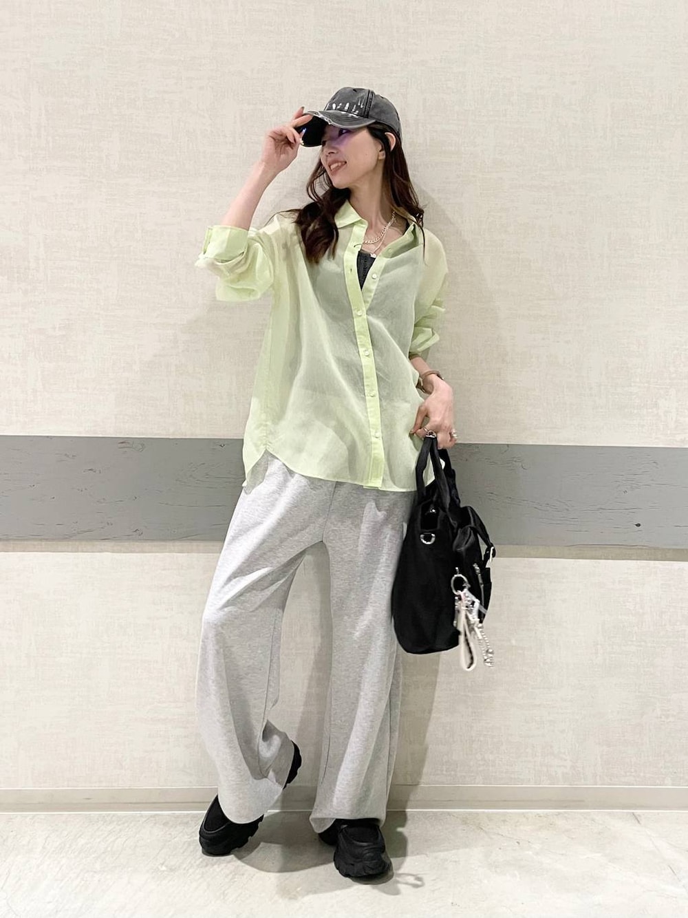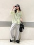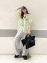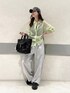 透け感のあるシャツは 涼しい素材です! パンツは少しコクーンな形で おしりまわりゆったりしてます