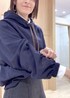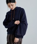スウェットというとカジュアルなイメージですが、 女性らしく使える一枚です。 程よいハリ感と、リボンテープとの配色もかわいいです♪ 秋冬に馴染みやすいネイビーはコーディネートに取り入れやすいですよ。
