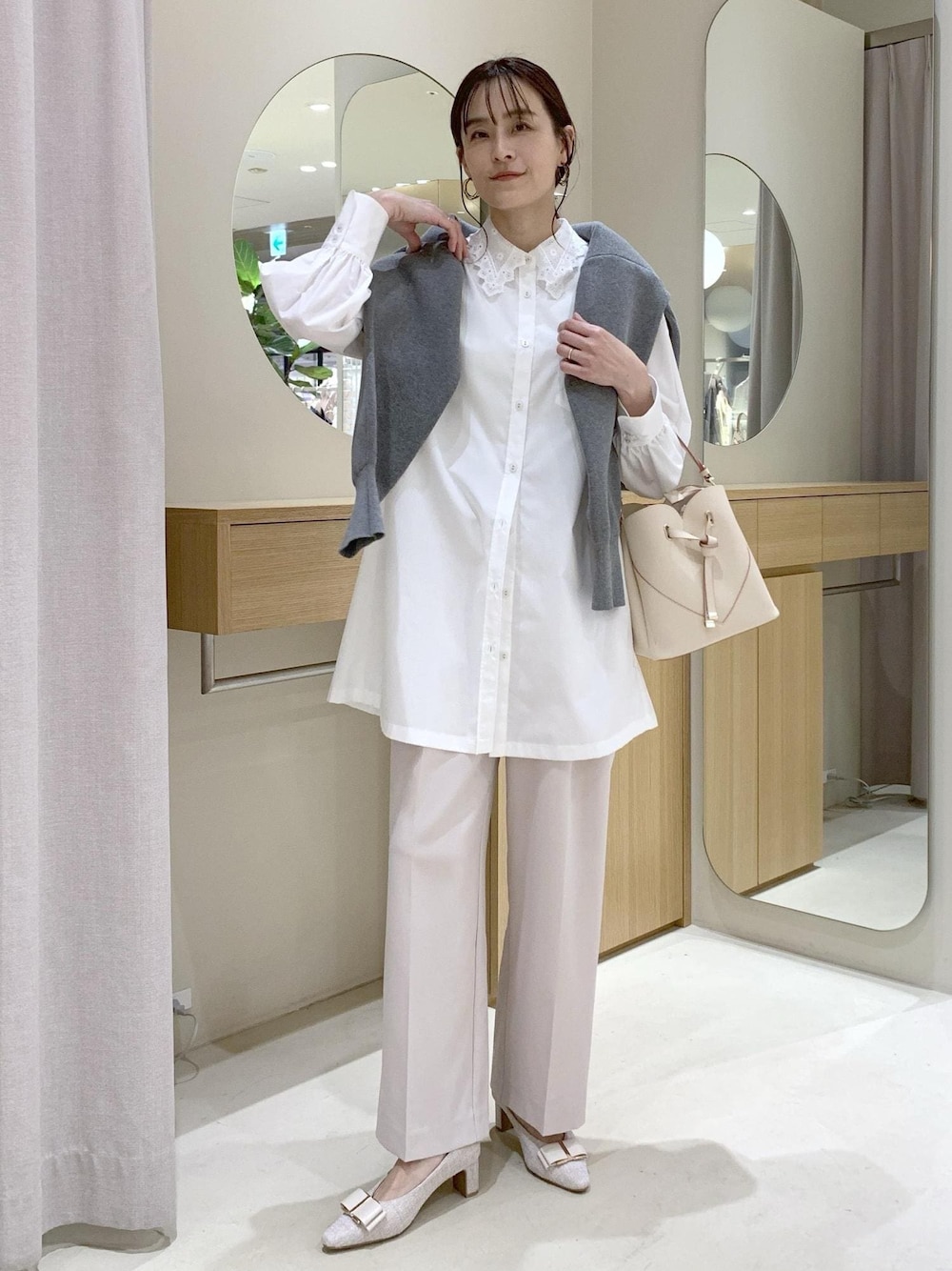 清涼感のある白を基調に、ぼやけないようグレーのカーディガンでメリハリをプラス。 春らしいスタイリングになります♪ 大人でも楽しめる襟レースでフェミニンさをプラス。 お気に入りのスタイリングは、 ♡を押していただければ【お気に入り】から すぐにご覧いただけます◎ 参考にしていただけると嬉しいです。 ____________________ LINEで在庫のお問い合わせや商品、 コーディネートのご相談など 是非お気軽にお問い合わせください◎ LINEで二子玉川ライズVISスタッフにご相談は 【友だち追加】をタップ!! <a href="https://lin.ee/19H7udx"style="background:url(https://scdn.line-apps.com/n/line_add_friends/btn/ja.png); background-size: contain; display: block;width: 116px;height: 36px; margin:.5em 0;"></a>