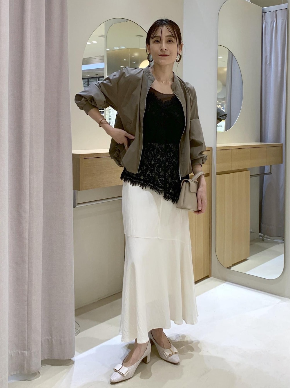 レースは甘さがでてしまうけど、黒だとシックに大人らしく着用できます。 春は寒暖差があり、軽い羽織が必要なシーズン。 カーキで落ち着いた大人コーデにしてみました。 お気に入りのスタイリングは、 ♡を押していただければ【お気に入り】から すぐにご覧いただけます◎ 参考にしていただけると嬉しいです。 ____________________ LINEで在庫のお問い合わせや商品、 コーディネートのご相談など 是非お気軽にお問い合わせください◎ LINEで二子玉川ライズVISスタッフにご相談は 【友だち追加】をタップ!! <a href="https://lin.ee/19H7udx"style="background:url(https://scdn.line-apps.com/n/line_add_friends/btn/ja.png); background-size: contain; display: block;width: 116px;height: 36px; margin:.5em 0;"></a>
