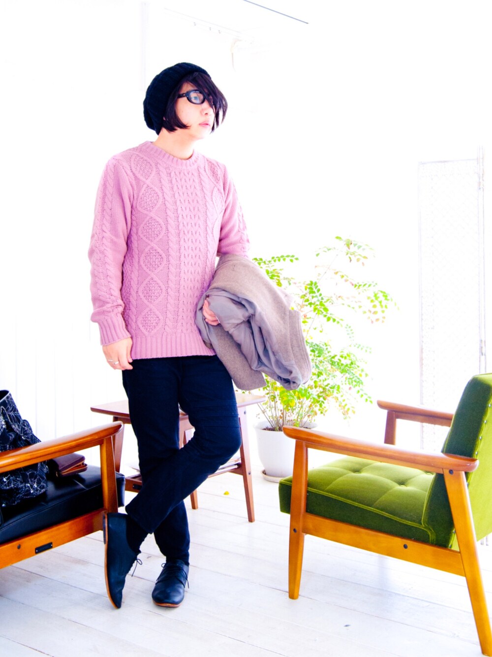 えてるのニット/セーター「ざっくり5Gケーブルセーター【ローゲージニット】」を使ったコーディネート