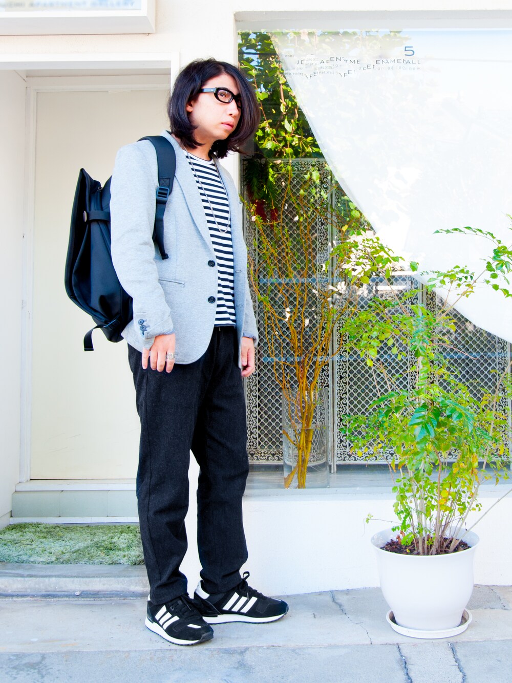 シンプルコーデ! ボーダーにジャケット合わせはカジュアルにジャケットが着れて好き。 起毛イージーパンツはこれから大活躍。 ジャケットを脱いでも成立するコーデも同時に考えました。暑いし💦 バウハウスへの応答、行ってきます。 ではでは!