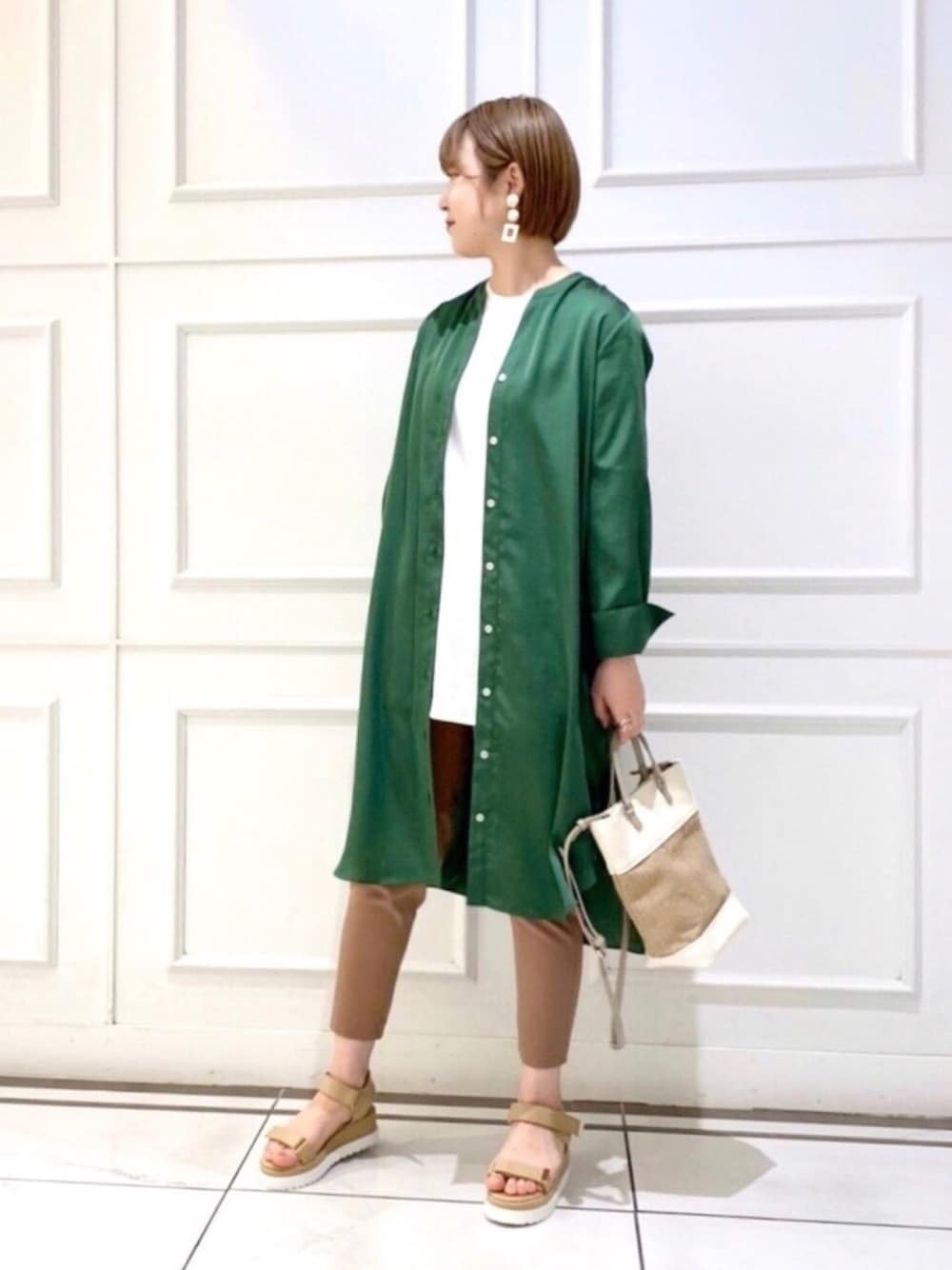 シャツワンピースはサテンなので上品な雰囲気が出ます🌼