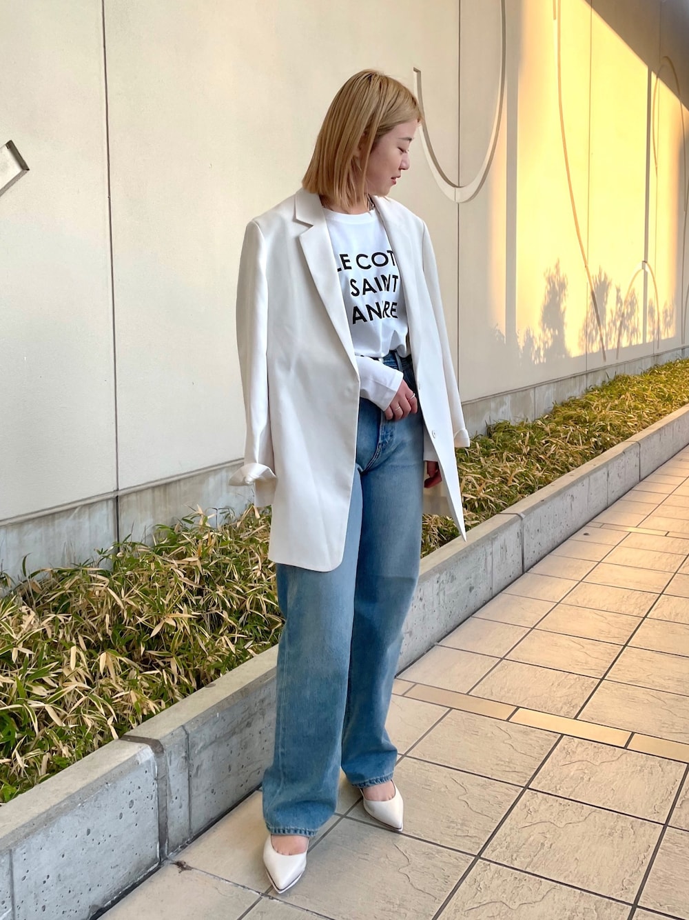 ホワイト系のジャケットにすると春らしい雰囲気に