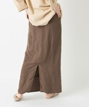 ふんわりとしたチュニックブラウスに、Iラインのロングスカートを合わせたスタイリング🌿 小物はブラックで、大人カジュアルに ⚫️