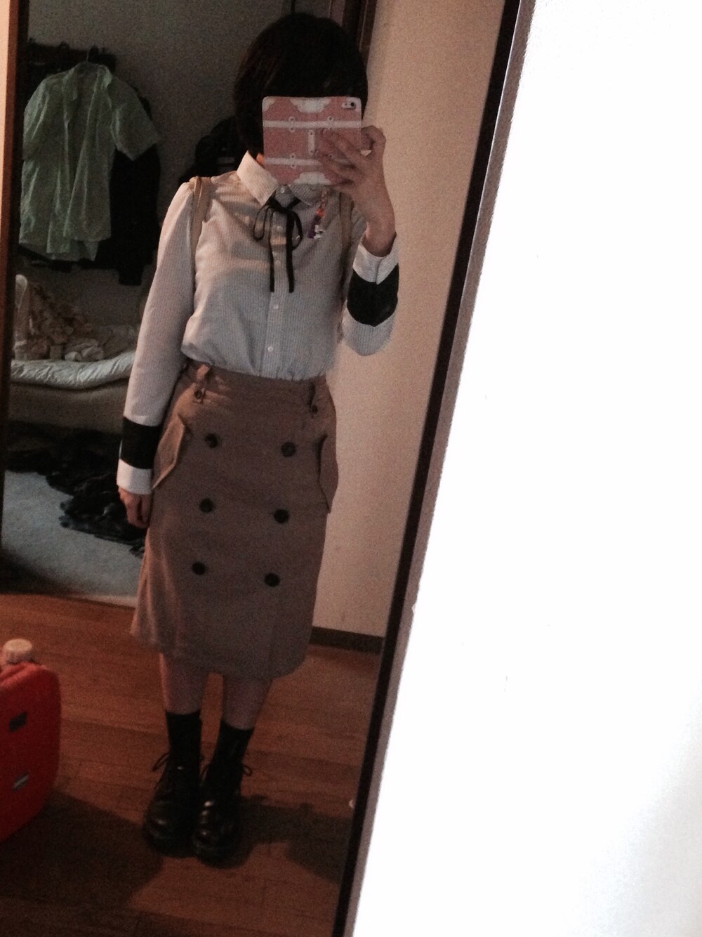 全身HAREのコーデ( ^ω^ ) シャツはストライプで個性派で可愛いし スカートはペンシルスカートで可愛い♡ フォローとセーブ、コメント お待ちしてます(っ´ω`c)♡