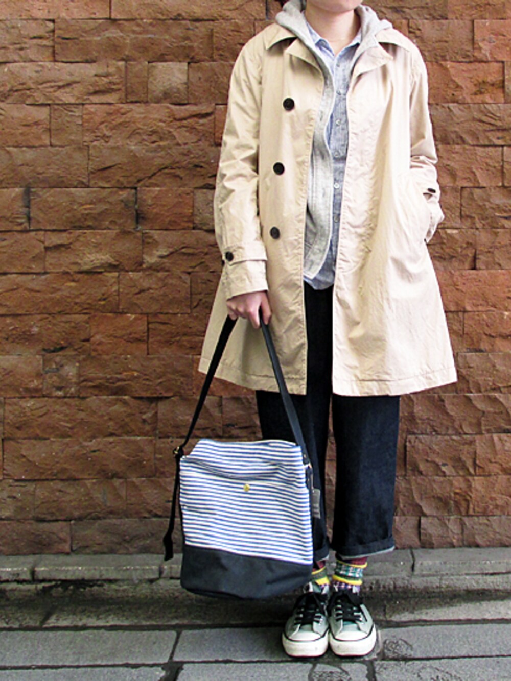 大人っぽい雰囲気のステンカラーコートを羽織ってお出かけスタイル♪ パーカー(nicholson and nicholson) パンツ(TRAVAIL MANUEL) バッグ(MARINEDAY)