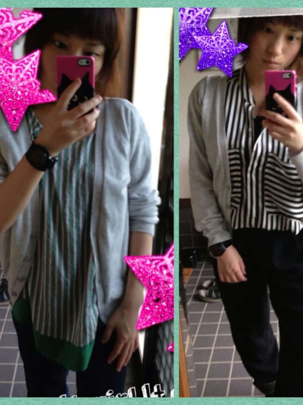 こんにちは✨ いつもこんな私ですがコメントのお返事くださったり仲良くしていただいてありがとうございます♡♡ 写真びみょーになっちゃった(^^;; 左☆カーディガン→GU トップス→ツモリチサト 右☆カーディガン→GU トップス→ZARA パンツ→エモダ お仕事スタイルです。 時計最近買いました♫色がお気に入り♡♡
