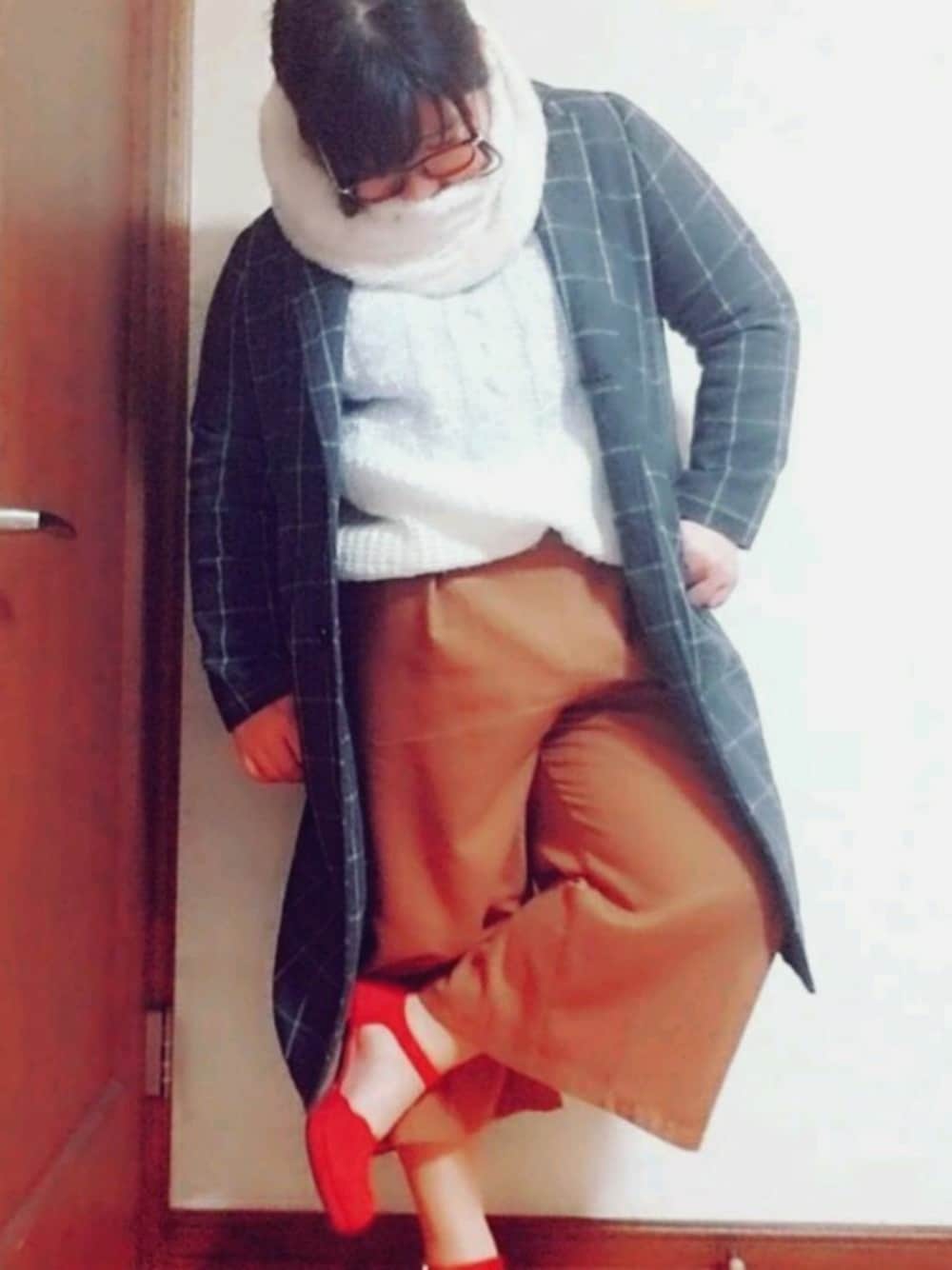 昨日のコーデ 寒すぎたのでチェスターコート着てスヌードかぶってめちゃ防寒😷❄ でもガウチョは矛盾。 ボルドーのパンプス履きたかっただけなんよ。