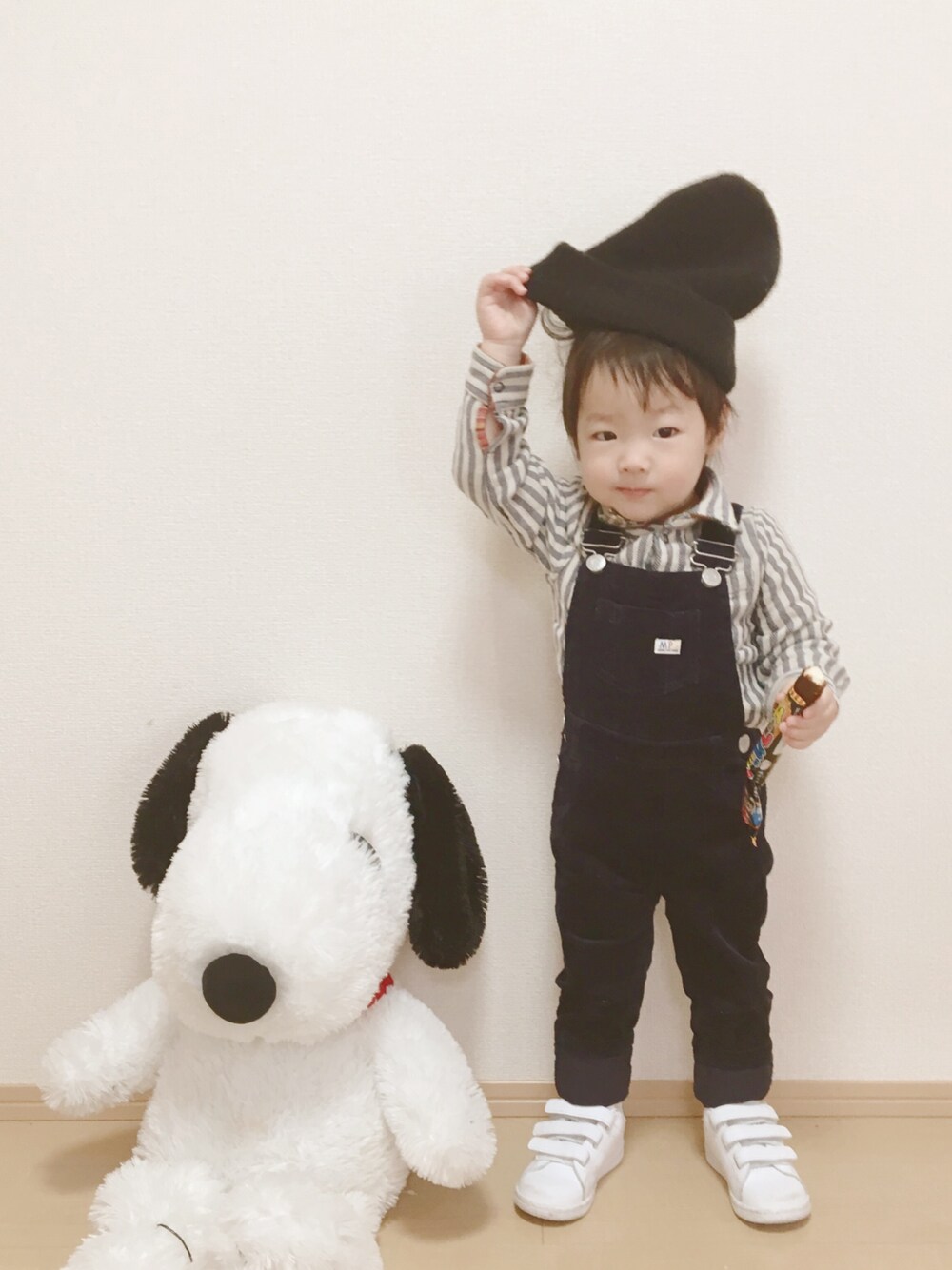 今日のコーデ☺️❤️ ニット帽がいやだったらしくめっちゃぐずってた(笑) 写真撮るの難しい😂
