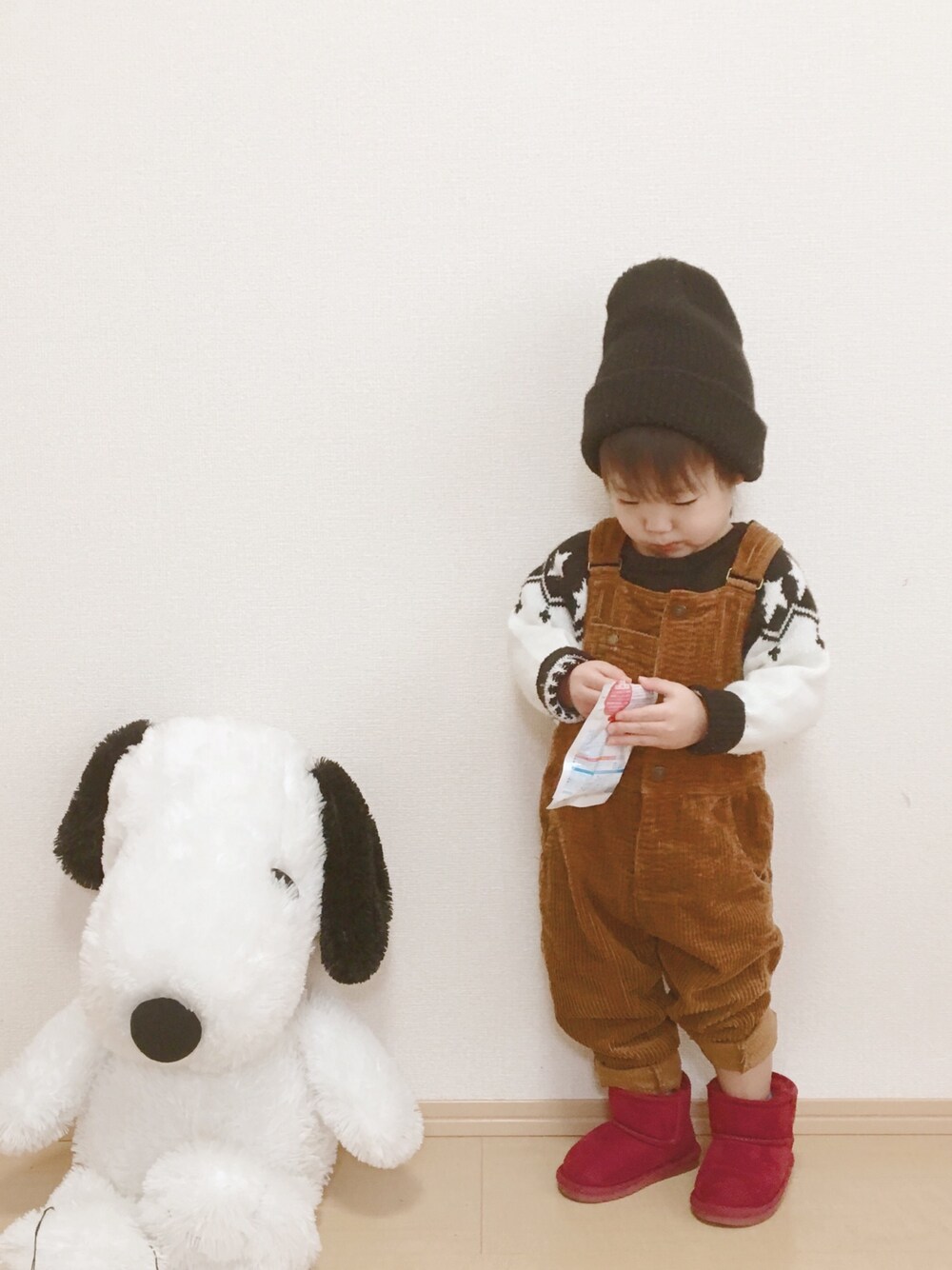 今日のコーデ👏❤️ アウター着るの嫌がるのわかってたから ちょっとあったかいニットで😂💜 なんでアウター嫌がるの(笑)