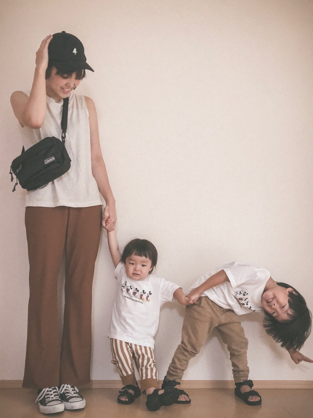 ホワイト系のTシャツ/カットソーを着用したキッズの夏コーディネートの1枚目の写真