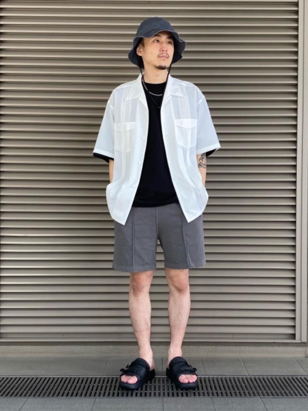 ●年齢:20代前半 ●身長:173cm ●普段サイズ:アウターL/ボトムスS シューズ27cm 【サイズ感】 シャツ:ややゆったり ボトムス:標準的 【素材感】 シャツ:ポリエステル100% ボトムス:コットン100% 【着心地】 真夏でも着やすく、ドライタッチで清涼感があります。 【コーディネートポイント】 ホワイトのキューバシャツをメインにリラックス感のあるコーディネートをしました。 レトロな雰囲気もありきれい目のパンツと合わせても相性抜群です。