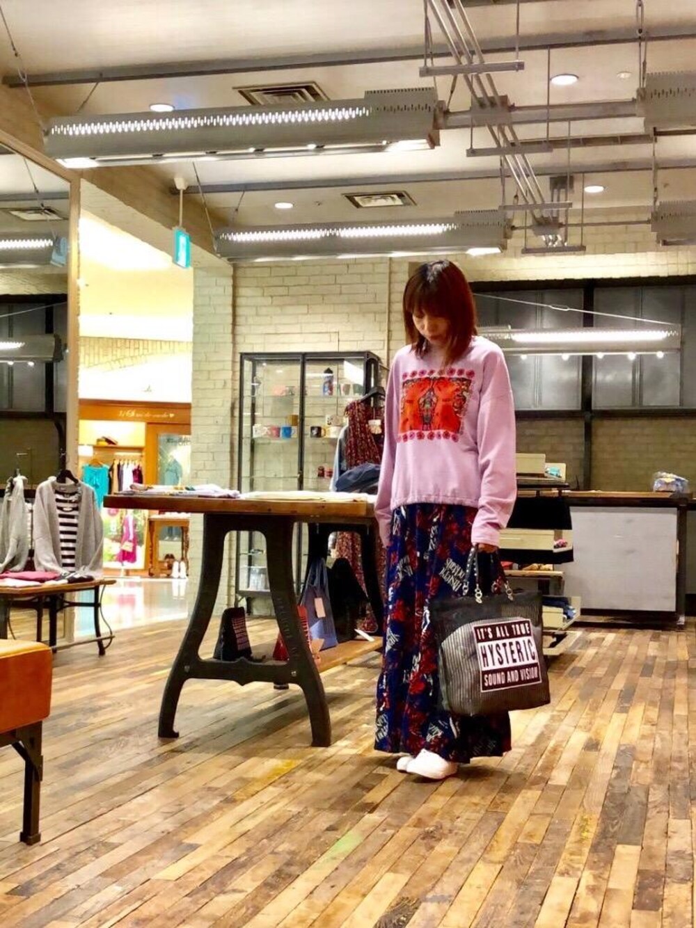 hiRa(HYSTERIC GLAMOURアミュプラザ博多店)のスカート「SHOCKING ISLAND総柄ロングSK」を使ったコーディネート